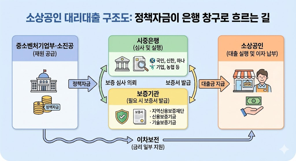 1. 소상공인 대리대출이란? (정책자금이 은행 창구로 나오는 구조)